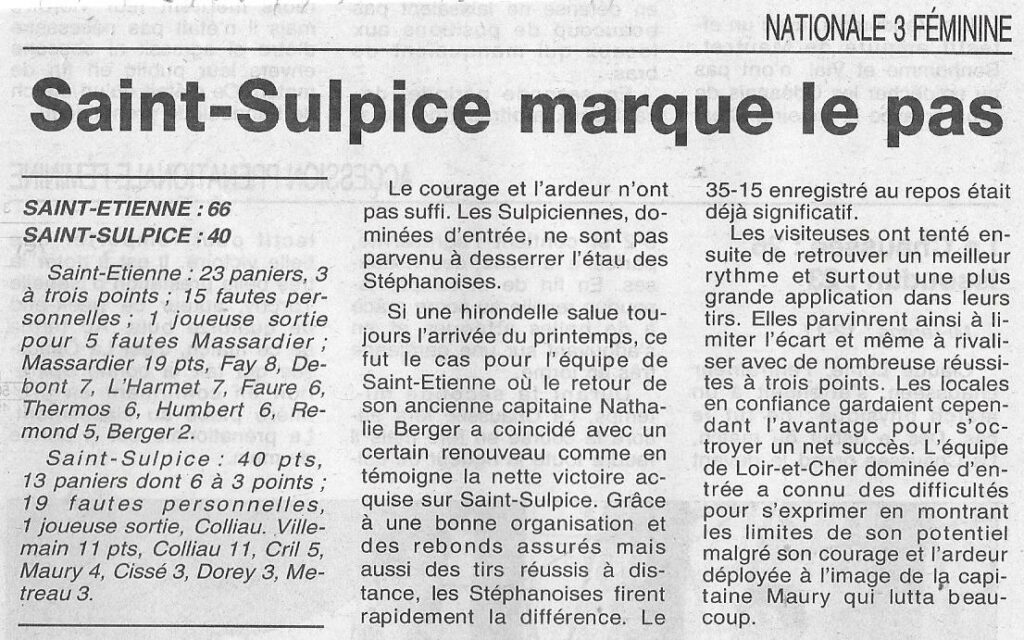 Saison 1998-1999 : En Championnat de Nationale Féminine 3, Saint-Etienne bat Saint-Sulpice