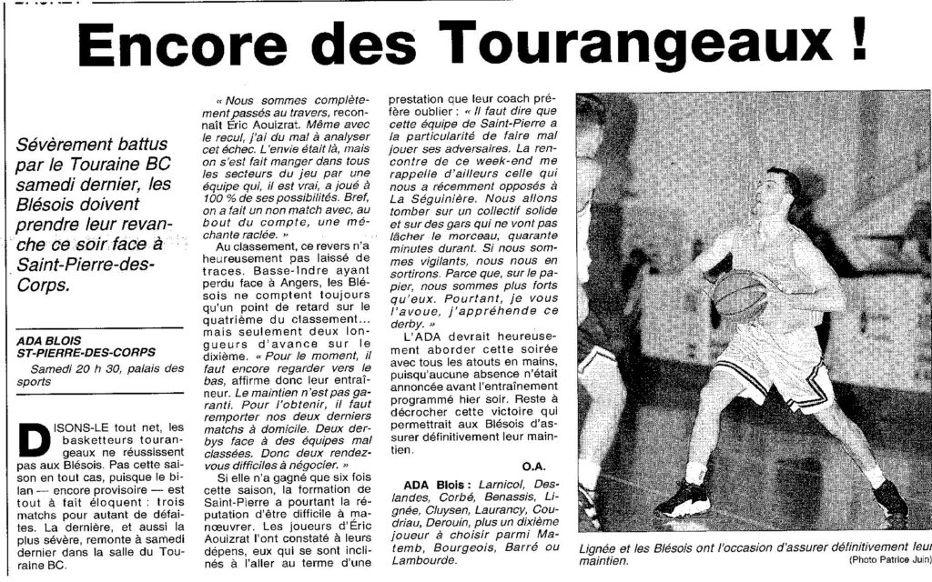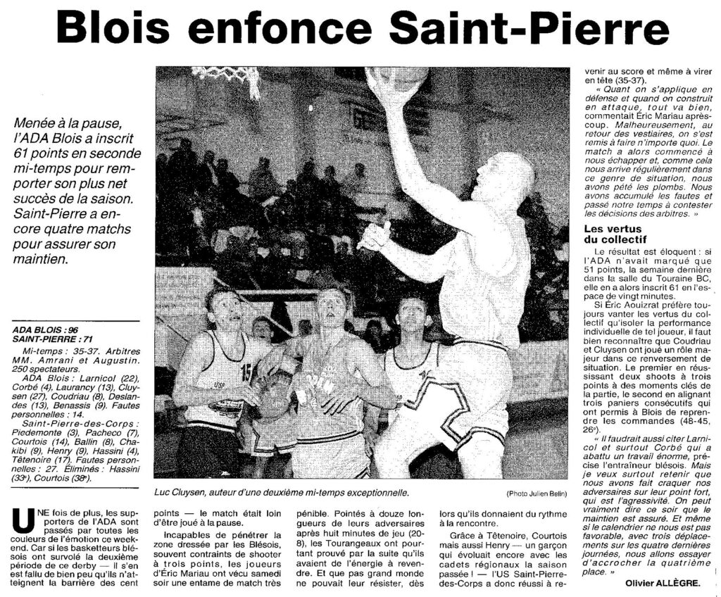 Saison 1998-1999 : En Championnat de Nationale Masculine 3, l’ADA Blois bat St Pierre des Corps