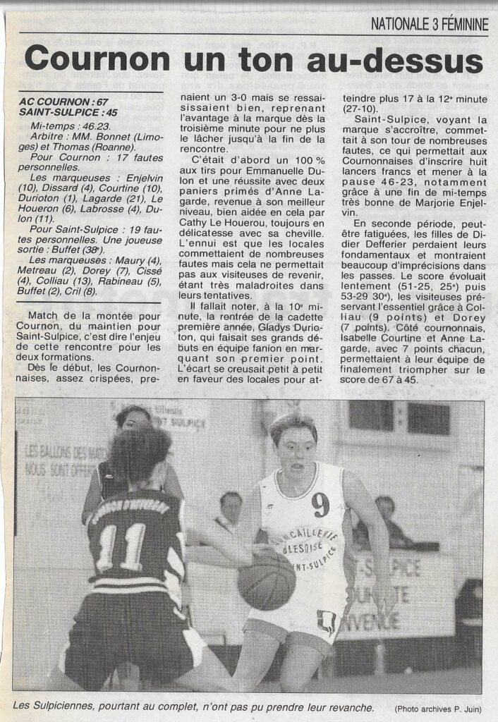 Saison 1998-1999 : En Championnat de Nationale Féminine 3, Cournon bat Saint-Sulpice