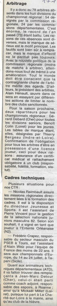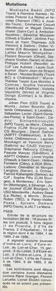 Saison 1998-1999 : Les Potins de la Ligue du Centre