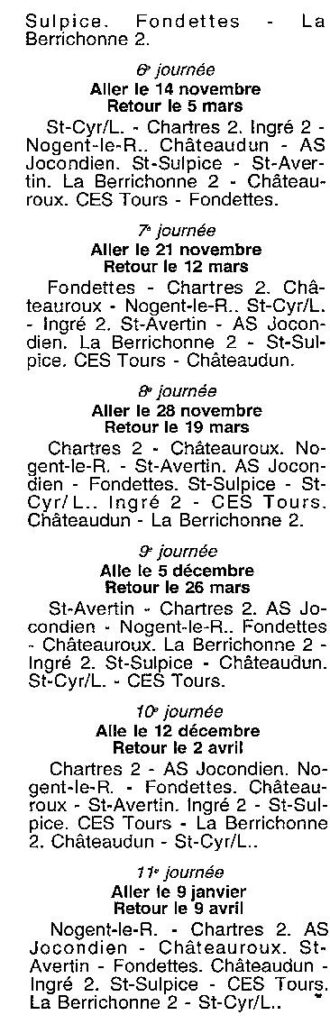 Saison 1999-2000 : Calendrier du Championnat d’Excellence Régionale Féminine
