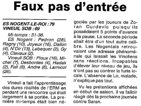 Saison 1999-2000 : En Championnat d’Excellence Régionale Masculine 2, Nogent le Roi bat Vineuil