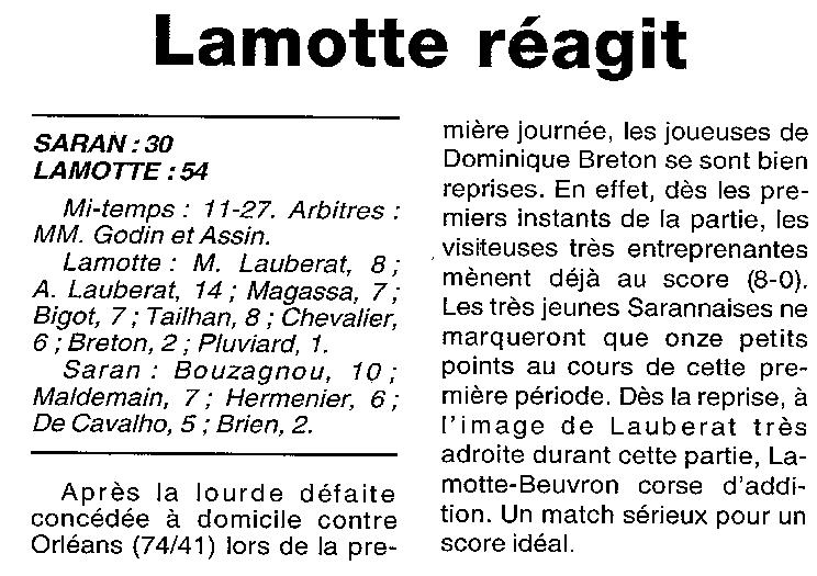Saison 1999-2000 : En Championnat de Promotion d’Excellence Régionale Féminine, Lamotte bat Saran