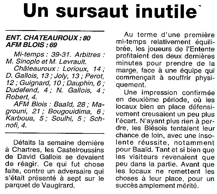 Saison 1999-2000 : En Championnat de Promotion d’Excellence Régionale Masculine, l’Entente de Châteauroux bat l’AFM Blois