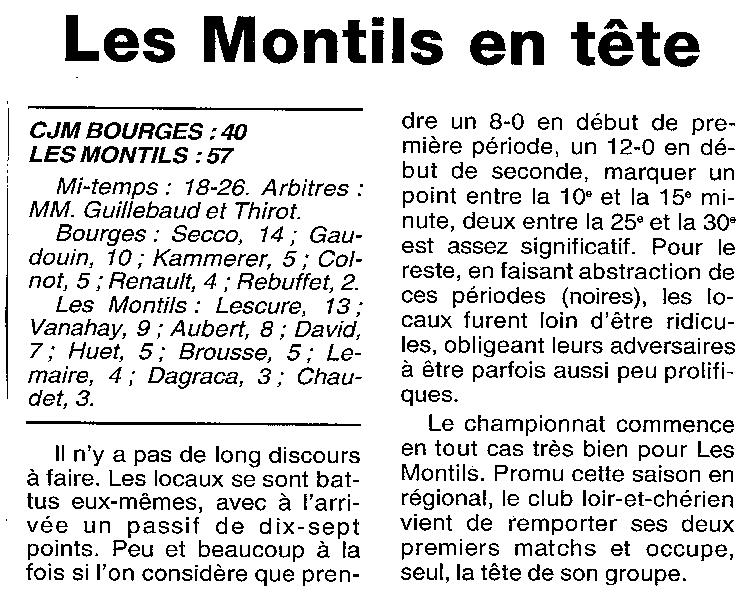 Saison 1999-2000 : En Championnat de Promotion d’Excellence Régionale Masculine, Les Montils bat CJM Bourges