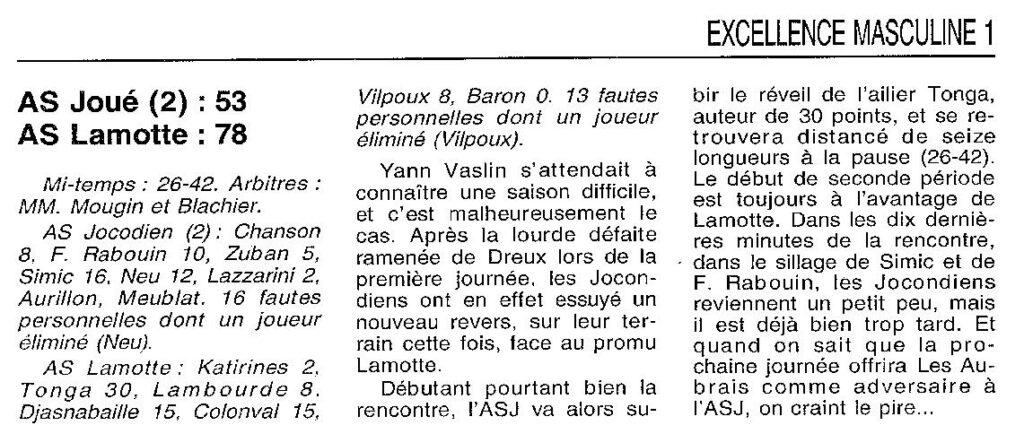 Saison 1999-2000 : En Championnat d’Excellence Régionale Masculine 1, l’AS Lamotte bat AS Joué les Tours