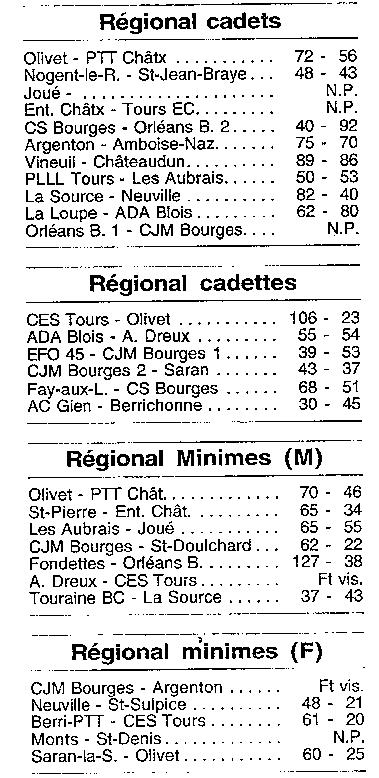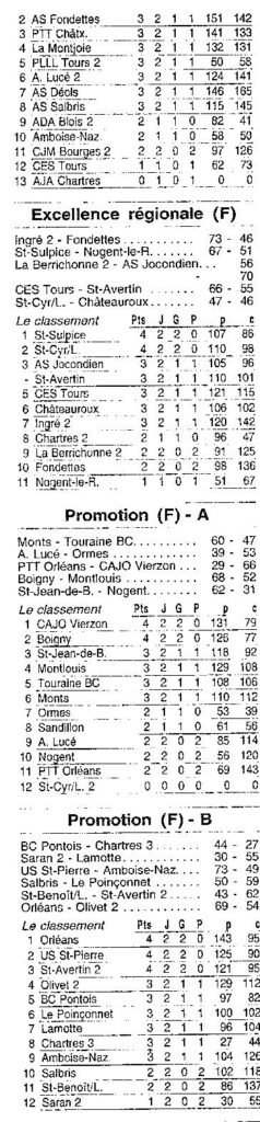 Saison 1999-2000 : Résultats et Classements des Championnats Régionaux après la Journée du 3 Octobre 1999