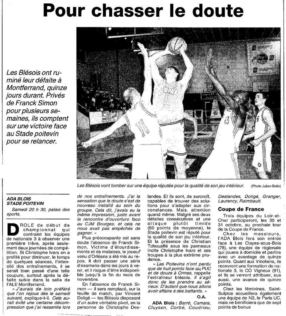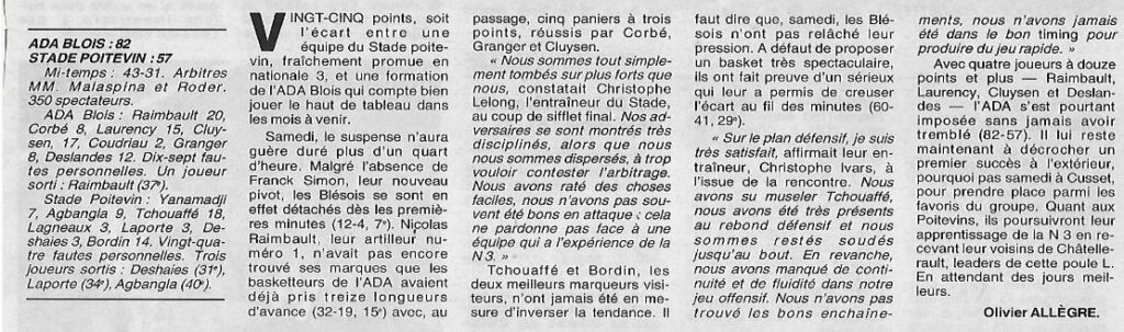 Saison 1999-2000 : En Nationale Masculine 3, l’ADA Blois s’impose face au Stade Poitevin
