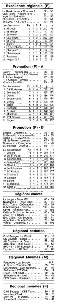 Saison 1999-2000 : Résultats et Classements des Championnats Régionaux après la Journée du 17 Octobre 1999