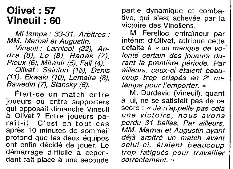 Saison 1999-2000 : En Championnat d’Excellence Régionale Masculine 2B, Vineuil bat Olivet