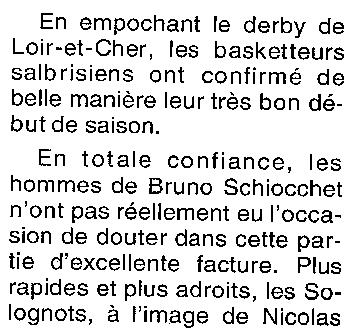 Saison 1999-2000 : En Championnat de Promotion d’Excellence Régionale, Salbris bat Les Montils