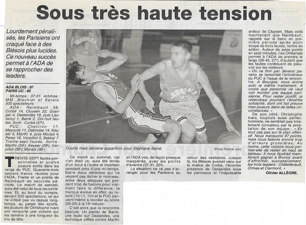 Saison 1999-2000 : En Nationale Masculine 3, l’ADA Blois s’impose face au PUC