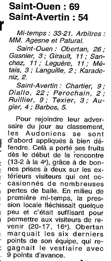 Saison 1999-2000 : En Championnat d’Excellence Régionale Masculine 2 A, St Ouen bat St Avertin