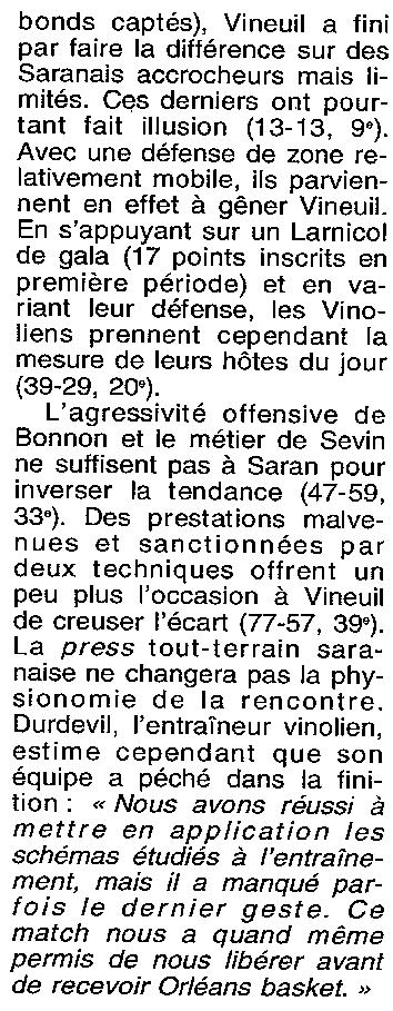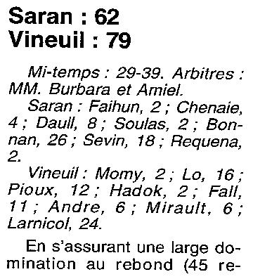 Saison 1999-2000 : En Championnat d’Excellence Régionale Masculine 2 A, Vineuil bat Saran