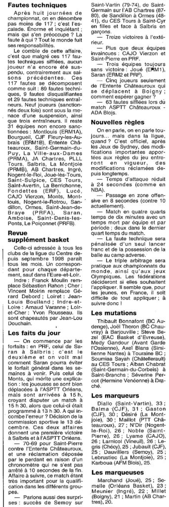 Saison 1999-2000 : Les Potins de la Ligue du Centre