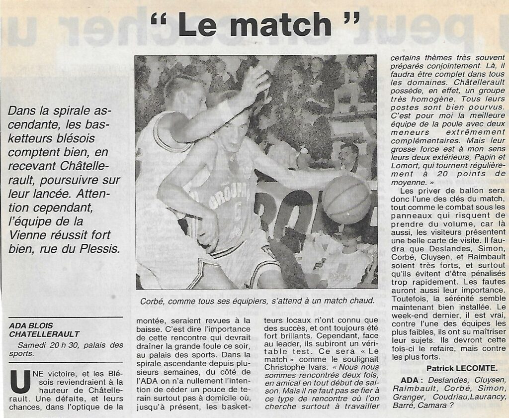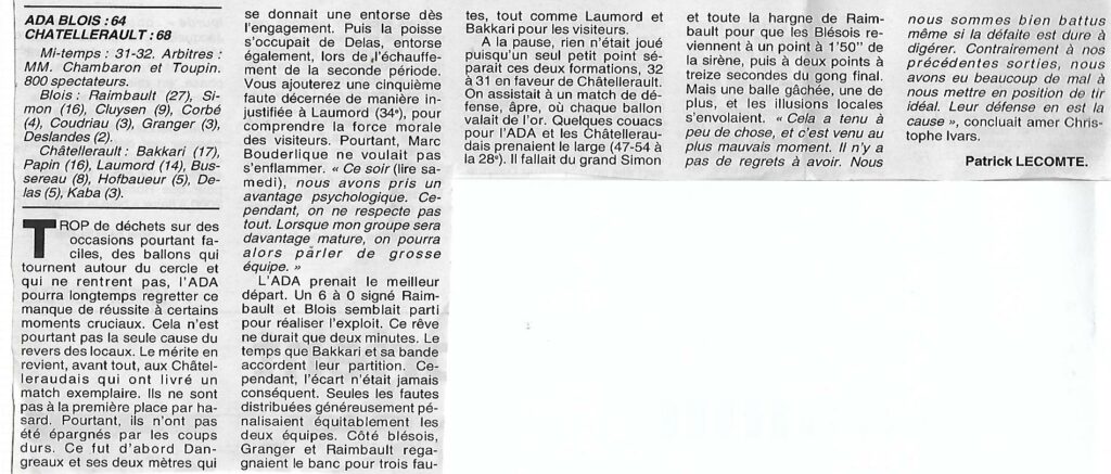 Saison 1999-2000 : En Nationale Masculine 3, l’ADA Blois s’incline face à Châtellerault