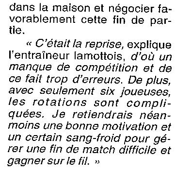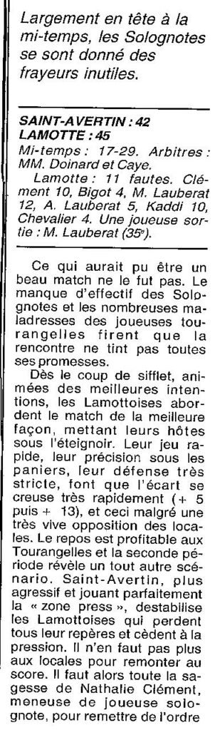 Saison 1999-2000 : En Championnat de Promotion d’Excellence Régionale Féminine, Lamotte bat St Avertin