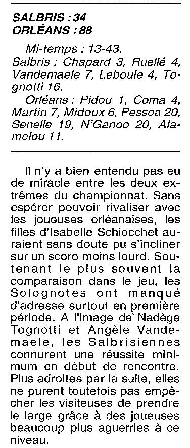 Saison 1999-2000 : En Championnat de Promotion d’Excellence Régionale Féminine, Orléans bat Salbris