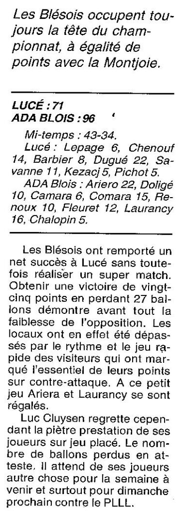 Saison 1999-2000 : En Championnat de Promotion d’Excellence Régionale Masculine, ADA Blois (R) bat Lucé