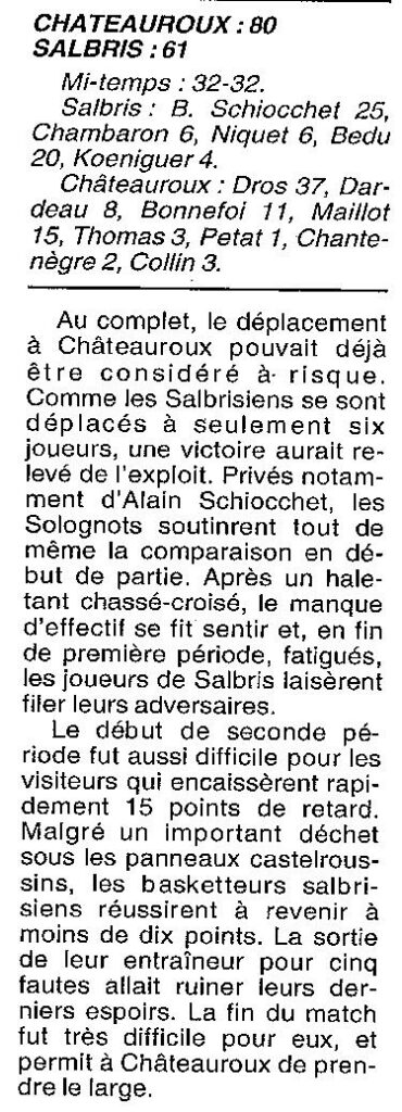 Saison 1999-2000 : En Championnat de Promotion d’Excellence Régionale Masculine, Châteauroux bat Salbris