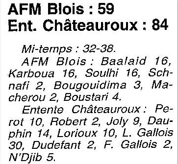 Saison 1999-2000 : En Championnat de Promotion d’Excellence Régionale Masculine, Entente Châteauroux bat AFM Blois