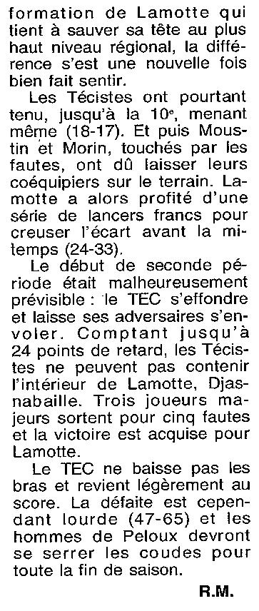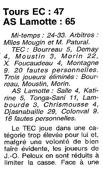 Saison 1999-2000 : En Championnat d’Excellence Régionale Masculine B, AS Lamotte bat Tours EC