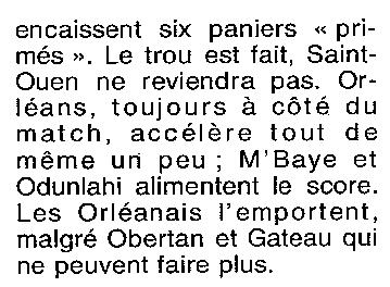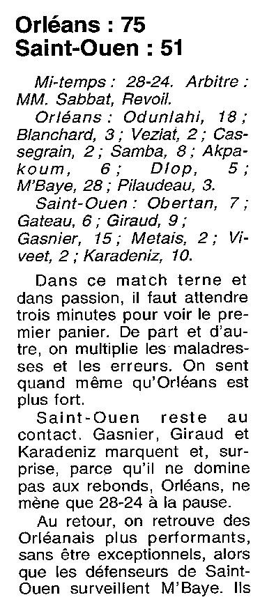 Saison 1999-2000 : En Championnat d’Excellence Régionale Masculine B, Orléans Basket bat St Ouen