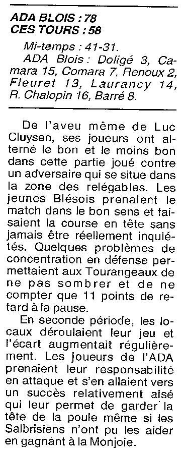 Saison 1999-2000 : En Championnat de Promotion d’Excellence Régionale Masculine, ADA Blois (R) bat CES Tours