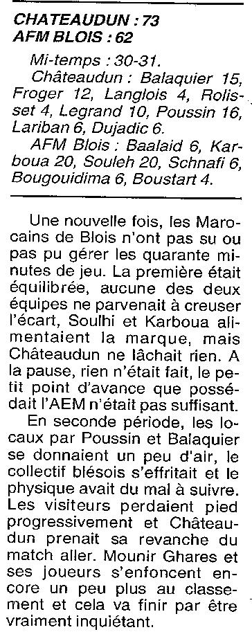 Saison 1999-2000 : En Championnat de Promotion d’Excellence Régionale Masculine, Châteaudun bat AFM Blois