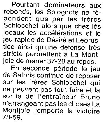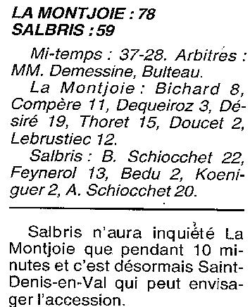 Saison 1999-2000 : En Championnat de Promotion d’Excellence Régionale Masculine, La Montjoie bat Salbris