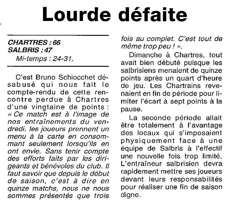 Saison 1999-2000 : En Championnat de Promotion d’Excellence Régionale Masculine, Chartres bat Salbris