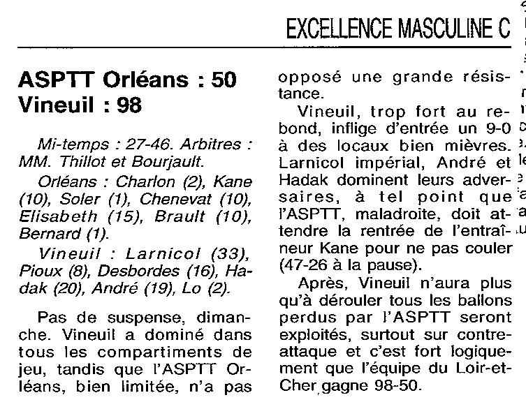 Saison 1999-2000 : En Championnat d’Excellence Régionale Masculine C, Vineuil bat ASPTT Orléans