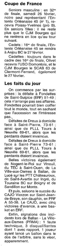 Saison 1999-2000 : Les Potins de la Ligue du Centre