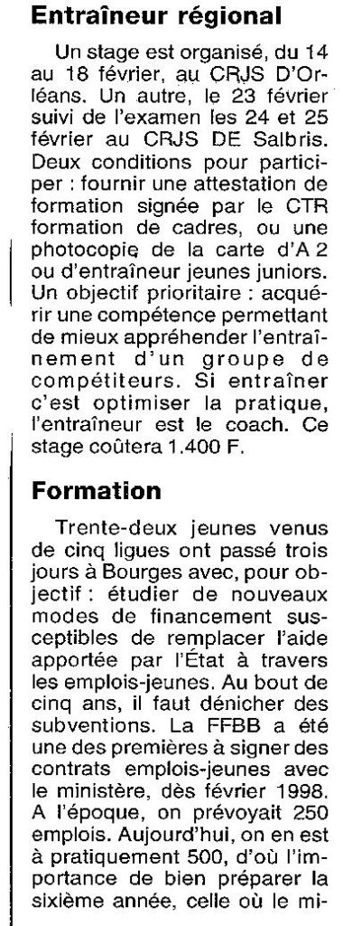 « Saison 1999-2000 : Le Loir et Cher nommé Département pilote pour la création du « Passeport Basket »