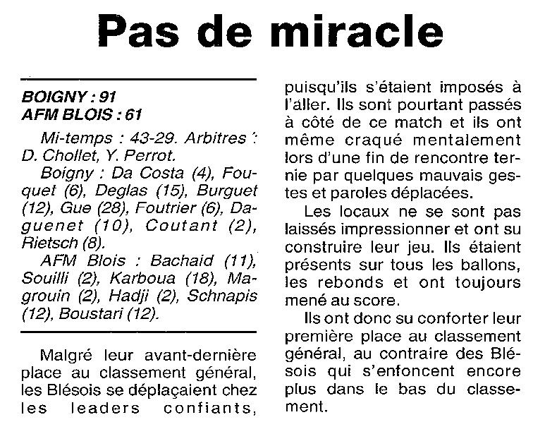 Saison 1999-2000 : En Championnat de Promotion d’Excellence Régionale Masculine, Boigny bat AFM Blois