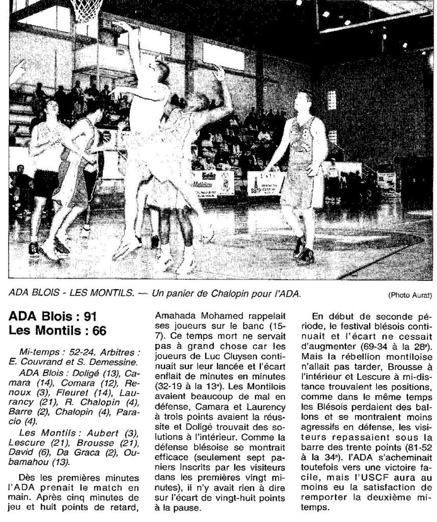 Saison 1999-2000 : En Championnat d’Excellence Régionale Masculine, ADA Blois bat Les Montils