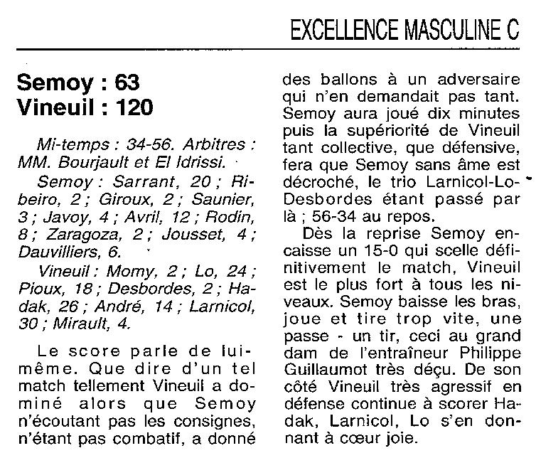 Saison 1999-2000 : En Championnat d’Excellence Régionale Masculine C, Vineuil bat Semoy
