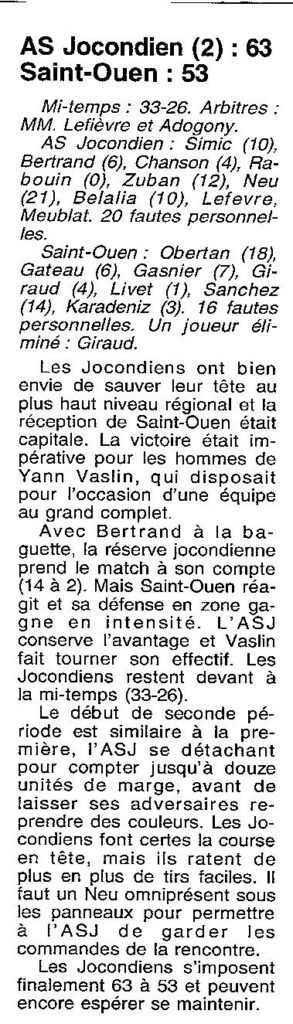 Saison 1999-2000 : En Championnat d’Excellence Régionale Masculine, l’AS Jocondien (2) bat St Ouen