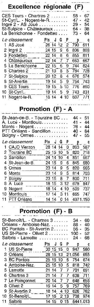 Saison 1999-2000 : Résultats et Classements des Championnats Régionaux après la Journée du 13 Février 2000