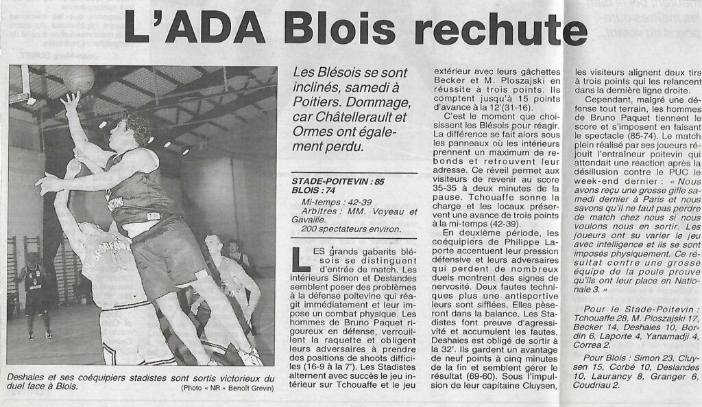 Saison 1999-2000 : En Championnat de Nationale 3 Masculine, l’ADA Blois chute face à Poitiers