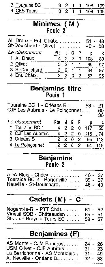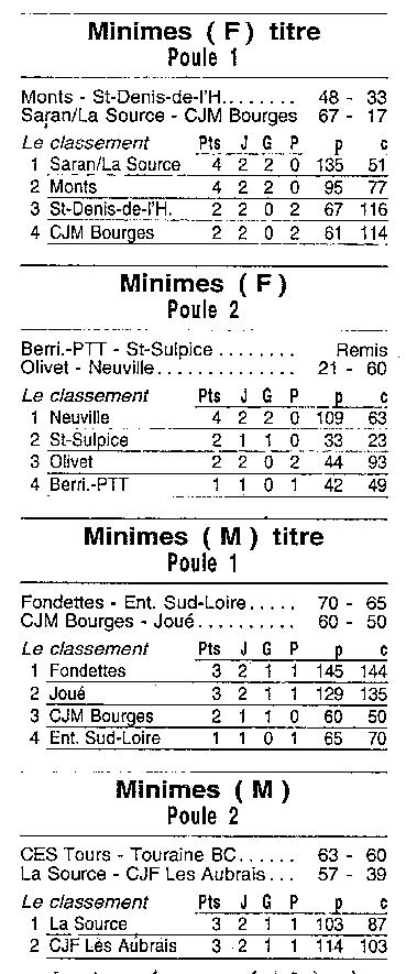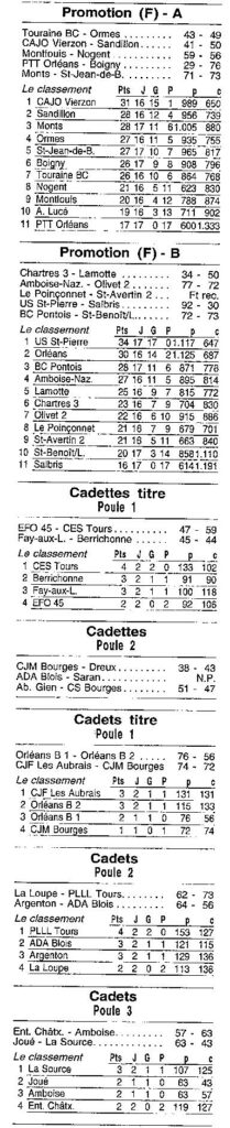 Saison 1999-2000 : Résultats et Classements des Championnats Régionaux après la Journée du12 Mars 2000