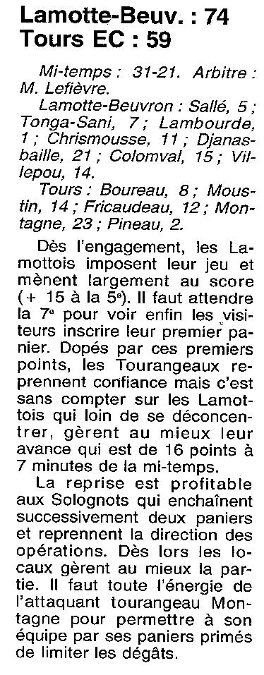 Saison 1999-2000 : En Championnat d’Excellence Régionale Masculine B, Lamotte-Beuvron bat le Tours EC