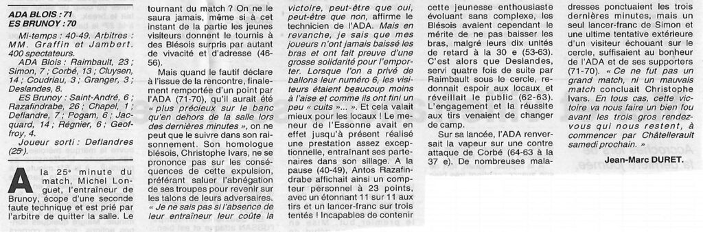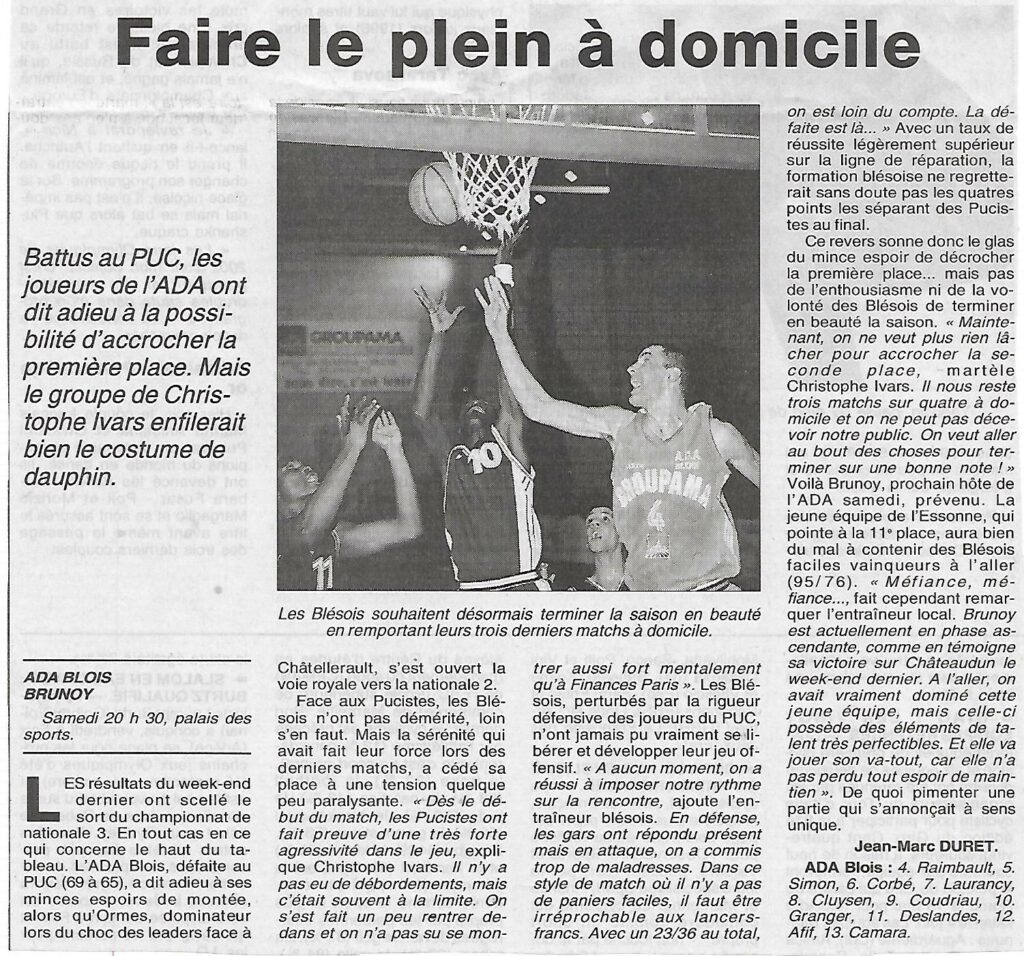 Saison 1999-2000 : En Nationale Masculine 3, l’ADA Blois l’emporte de justesse face à une jeune équipe de Brunoy