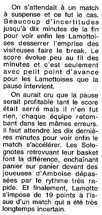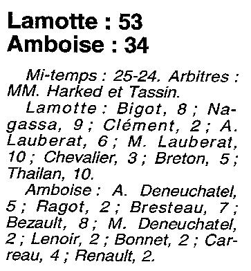 Saison 1999-2000 : En Championnat de Promotion d’Excellence Régionale Féminine, Lamotte bat Amboise