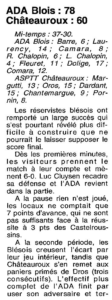 Saison 1999-2000 : En Championnat de Promotion d’Excellence Régionale Masculine, ADA Blois (R) bat ASPTT Châteauroux