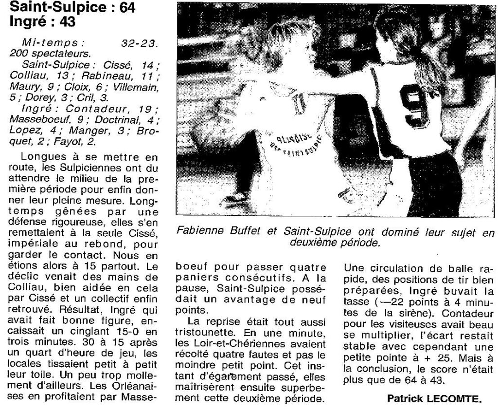 Saison 1999-2000 : En Championnat d’Excellence Régionale Féminine, St Sulpice bat Ingré