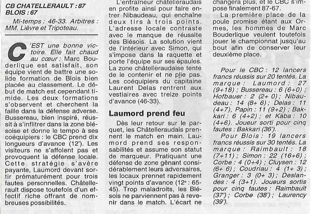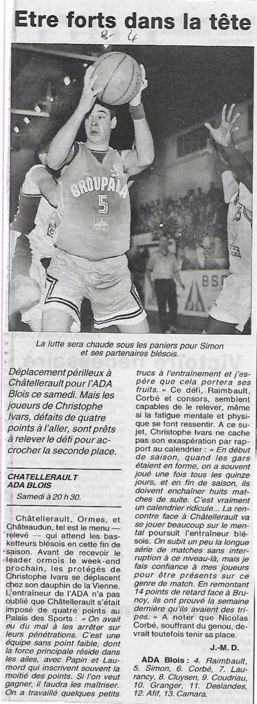 Saison 1999-2000 : En Nationale Masculine 3, l’ADA Blois s’incline à Châtellerault