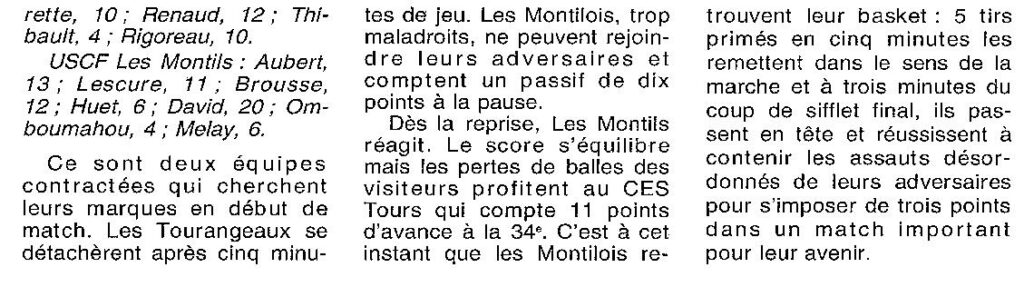 Saison 1999-2000 : En Championnat de Promotion d’Excellence Régionale Masculine, Les Montils bat CES Tours