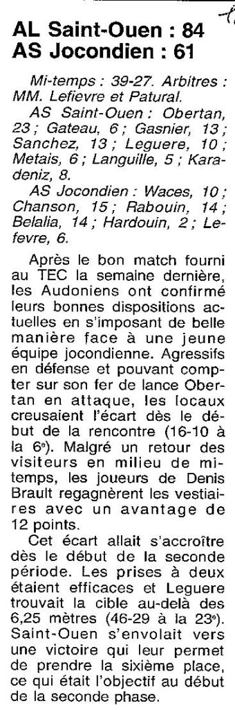 Saison 1999-2000 : En Championnat d’Excellence Régionale Masculine B, AL St Ouen bat AS Jocondien