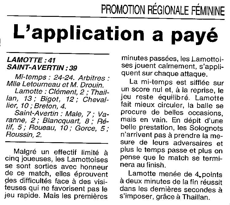 Saison 1999-2000 : En Championnat de Promotion d’Excellence Régionale Féminine, Lamotte-Beuvron bat Saint-Avertin
